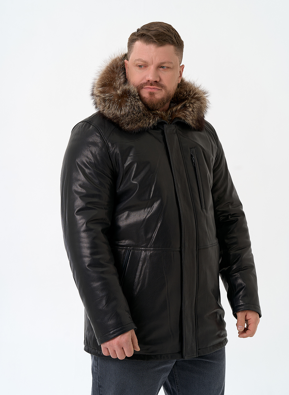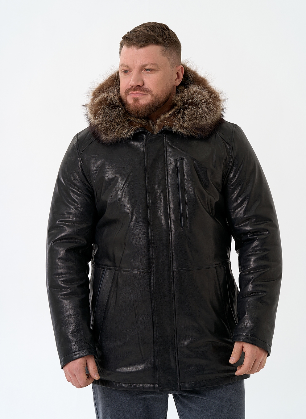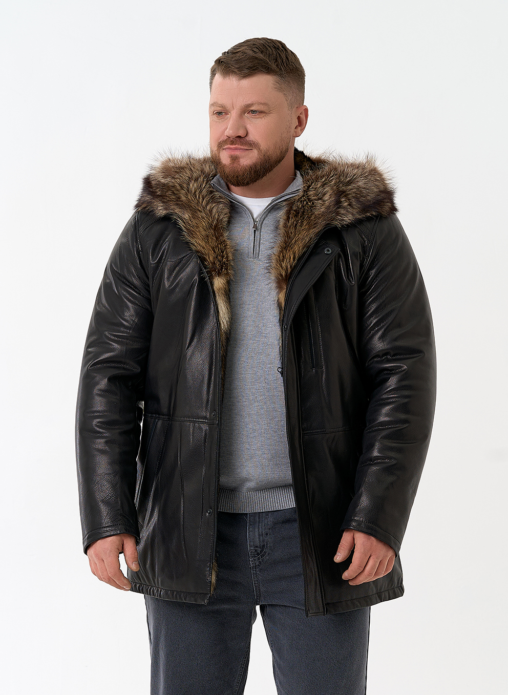 Тип ворота - капюшон, отделка мех енота
