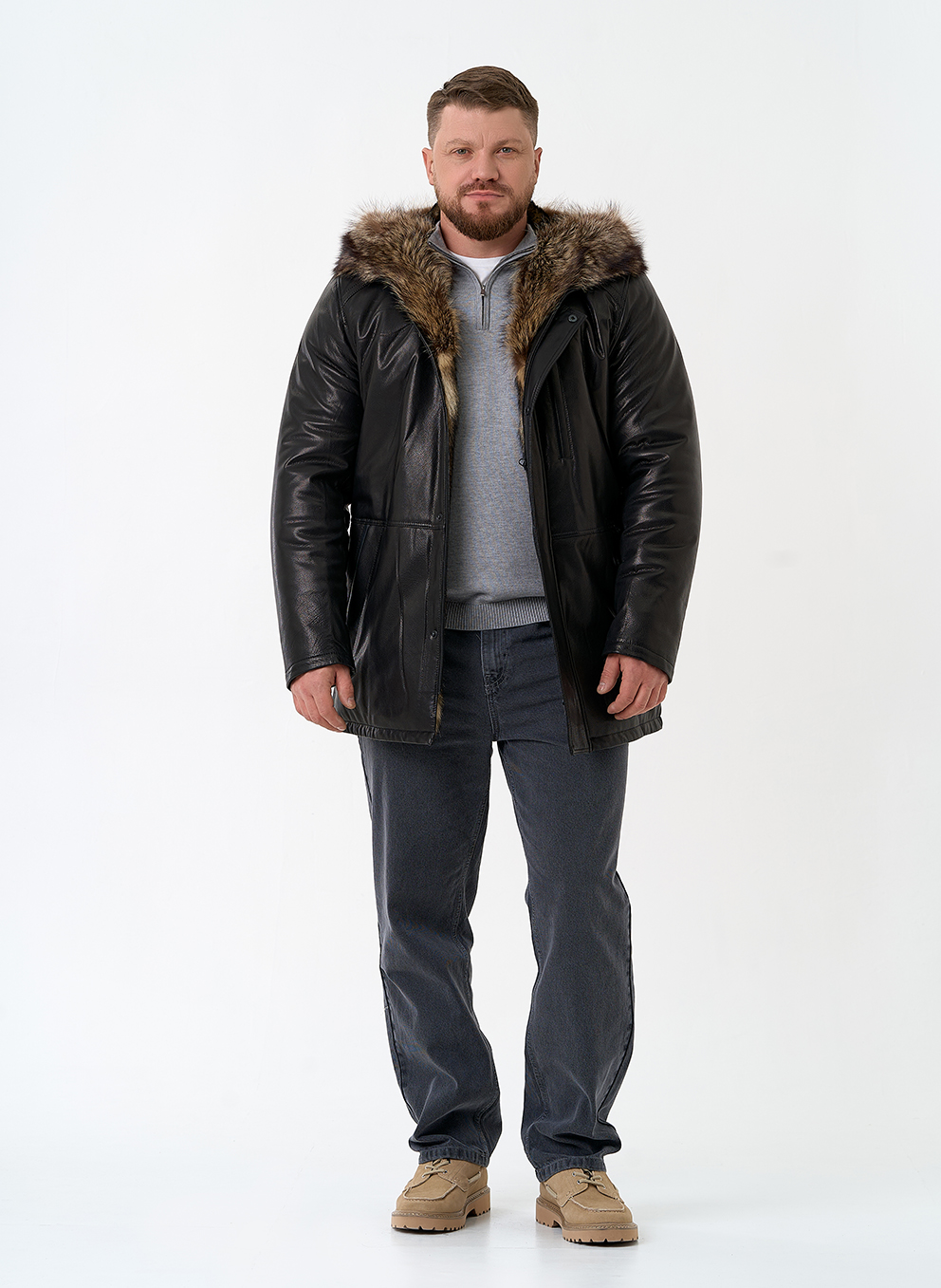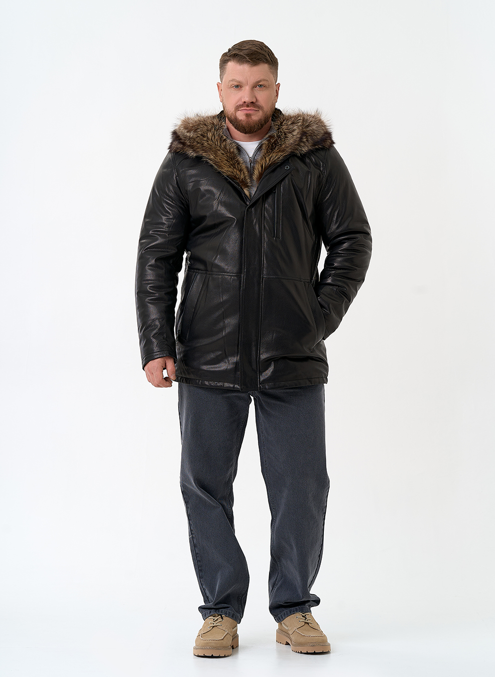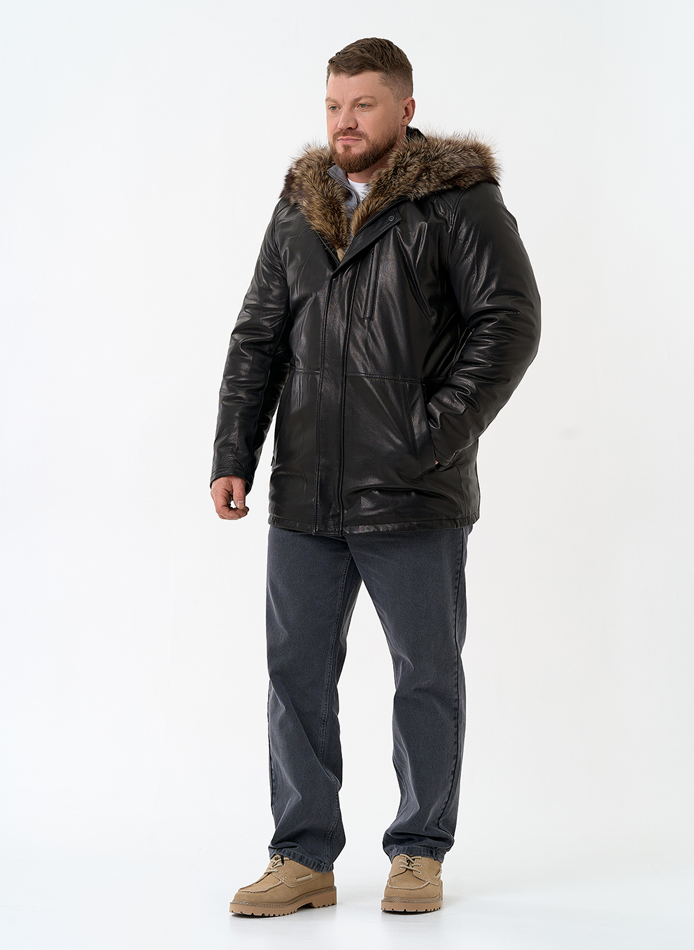 Тип ворота - капюшон, отделка мех енота
