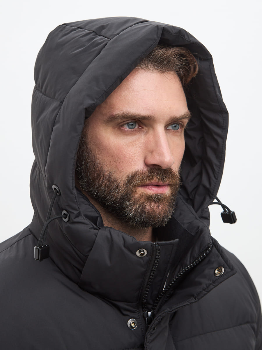Мужской удлиненный пуховик с капюшоном