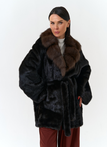 Тип ворота - английский воротник, отделка куница