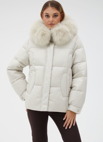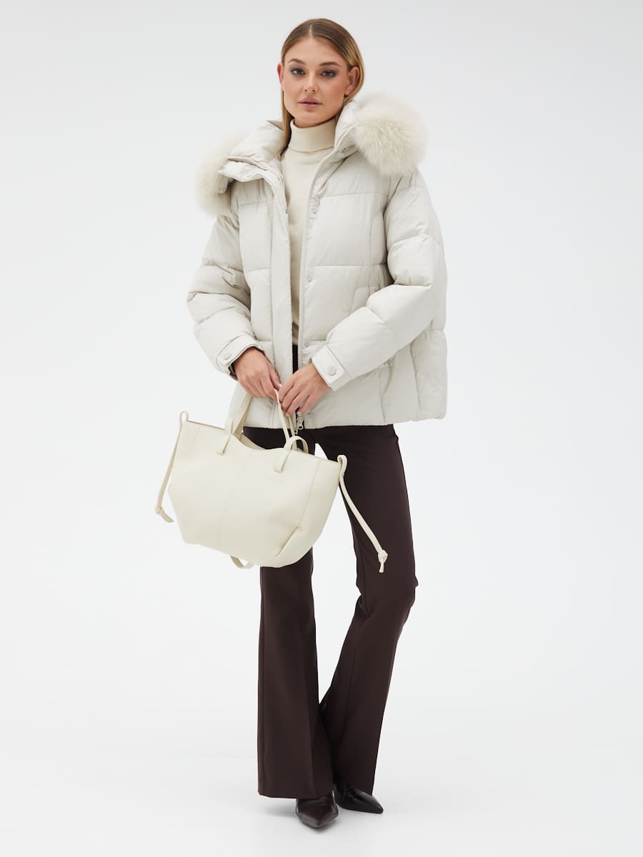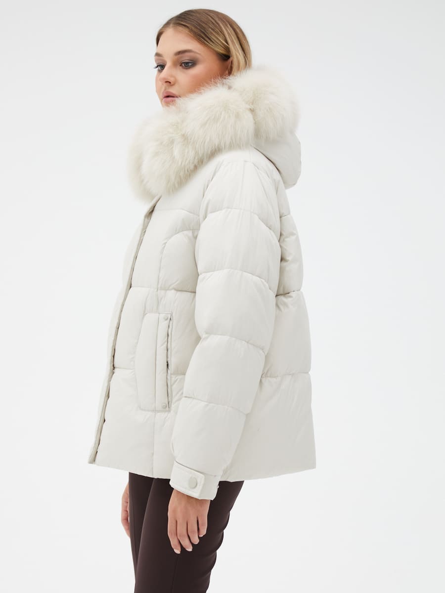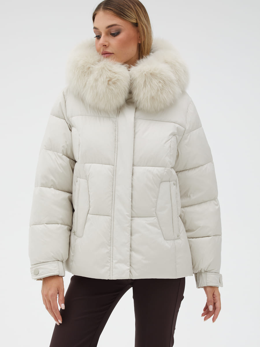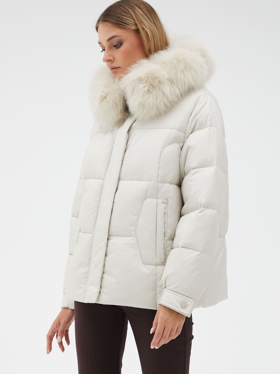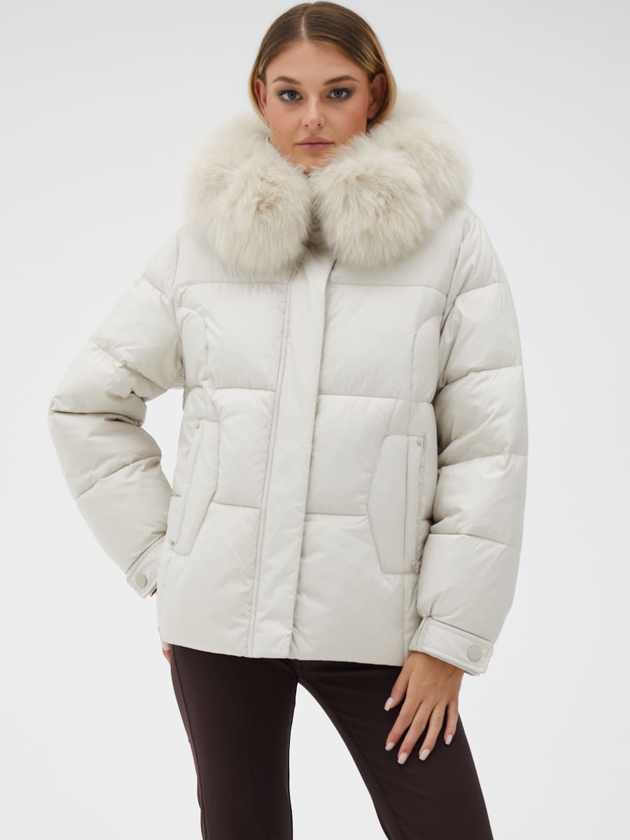 Вид ворота - капюшон, отделка мех песца