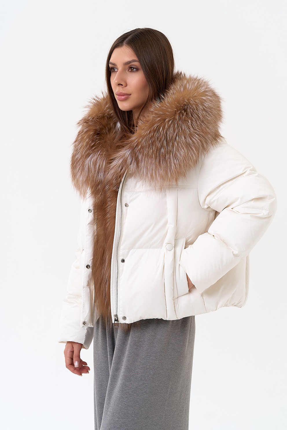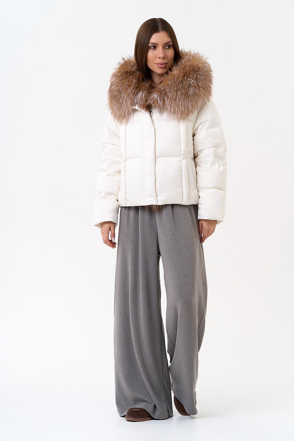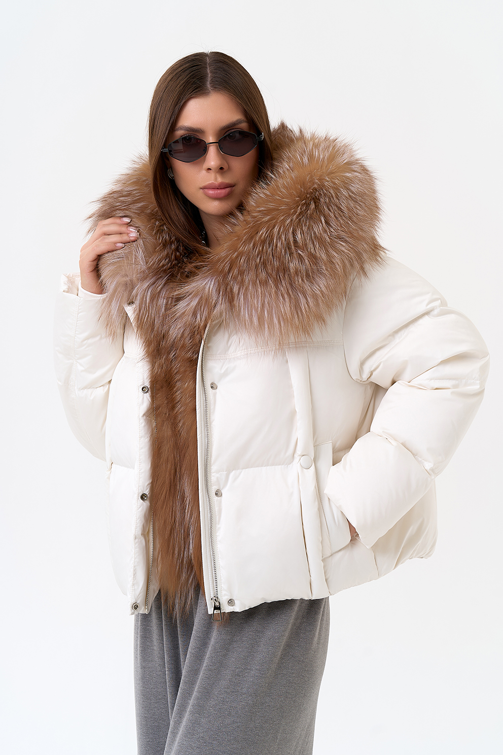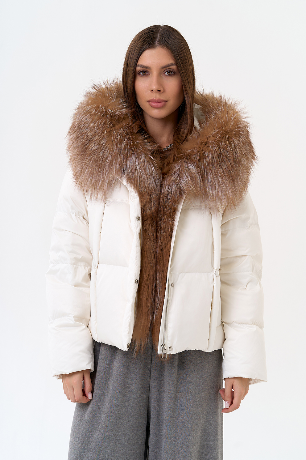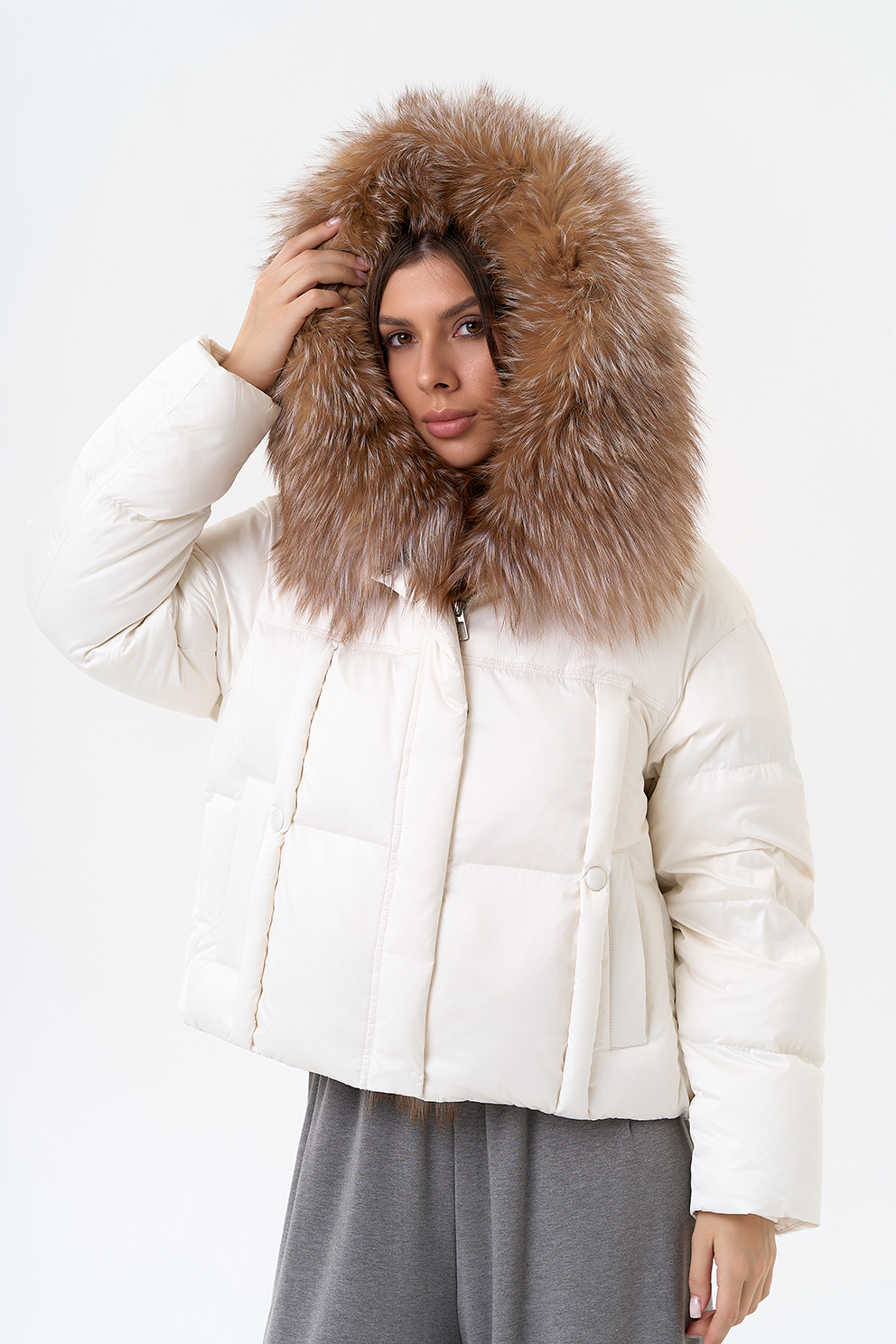 Крой воротника - капюшон, отделка блюфрост