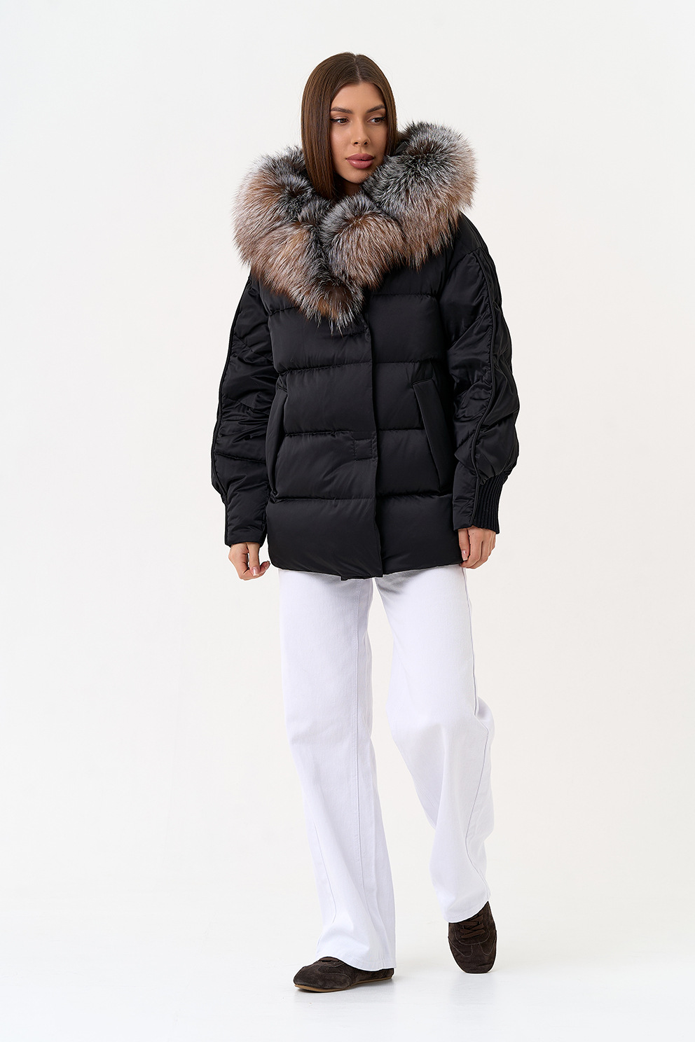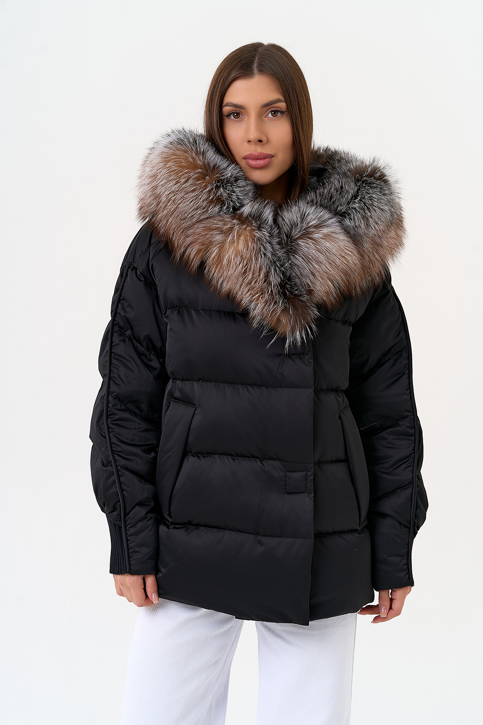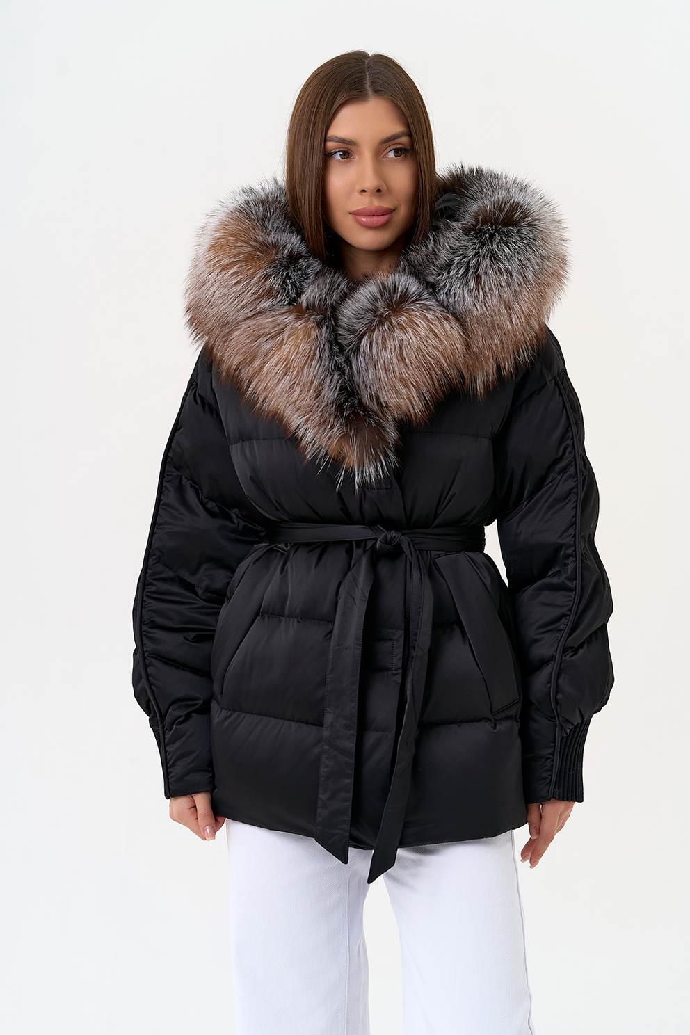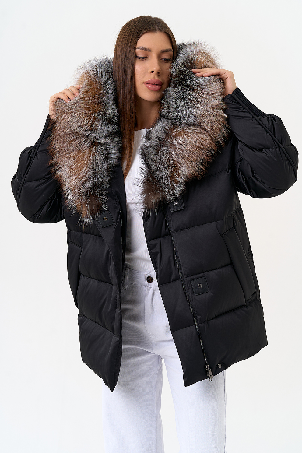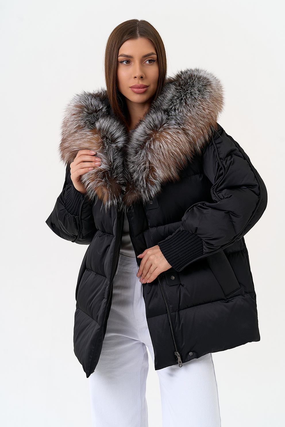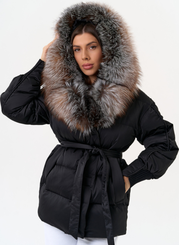 Крой воротника - капюшон, отделка блюфрост