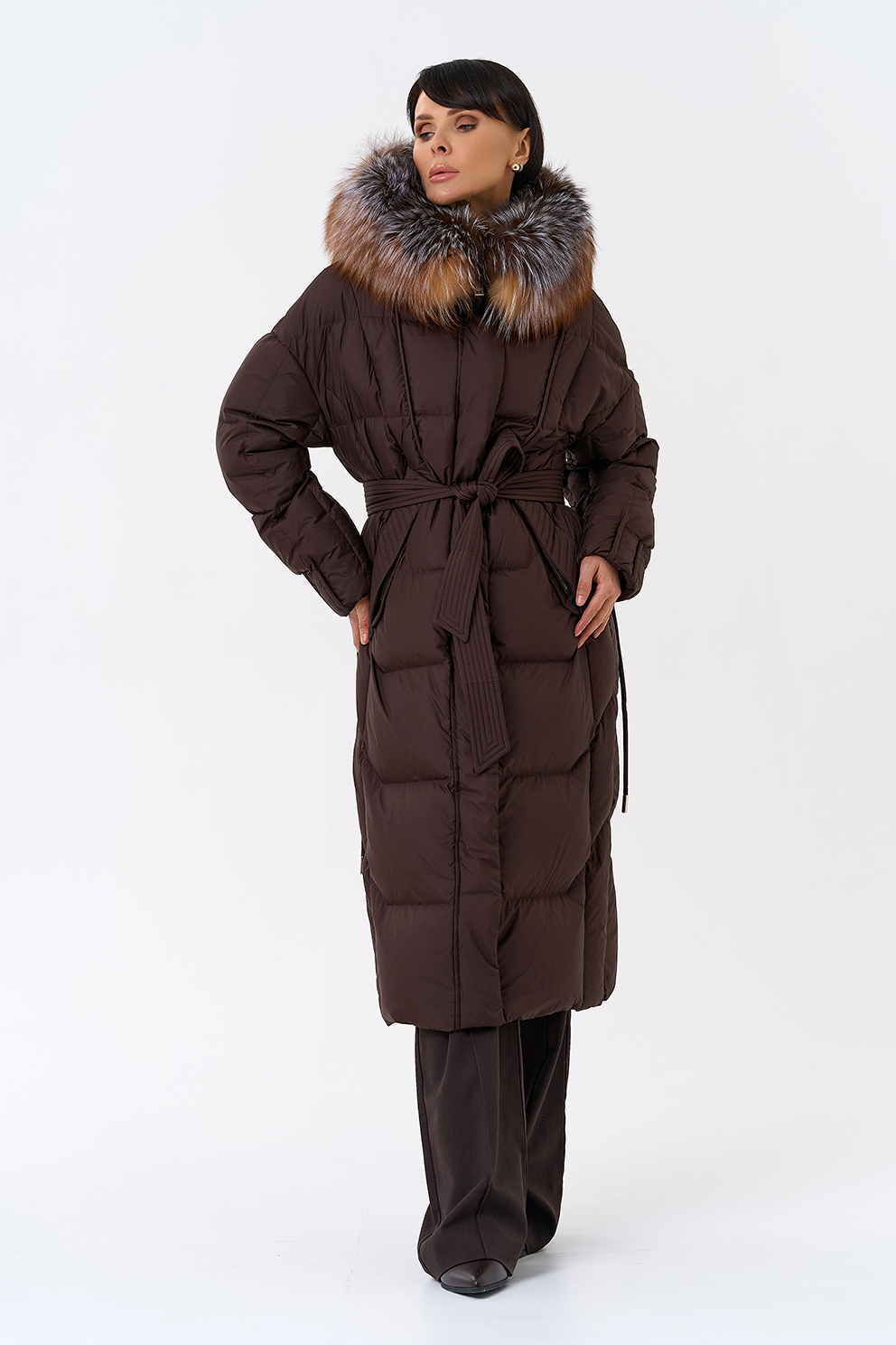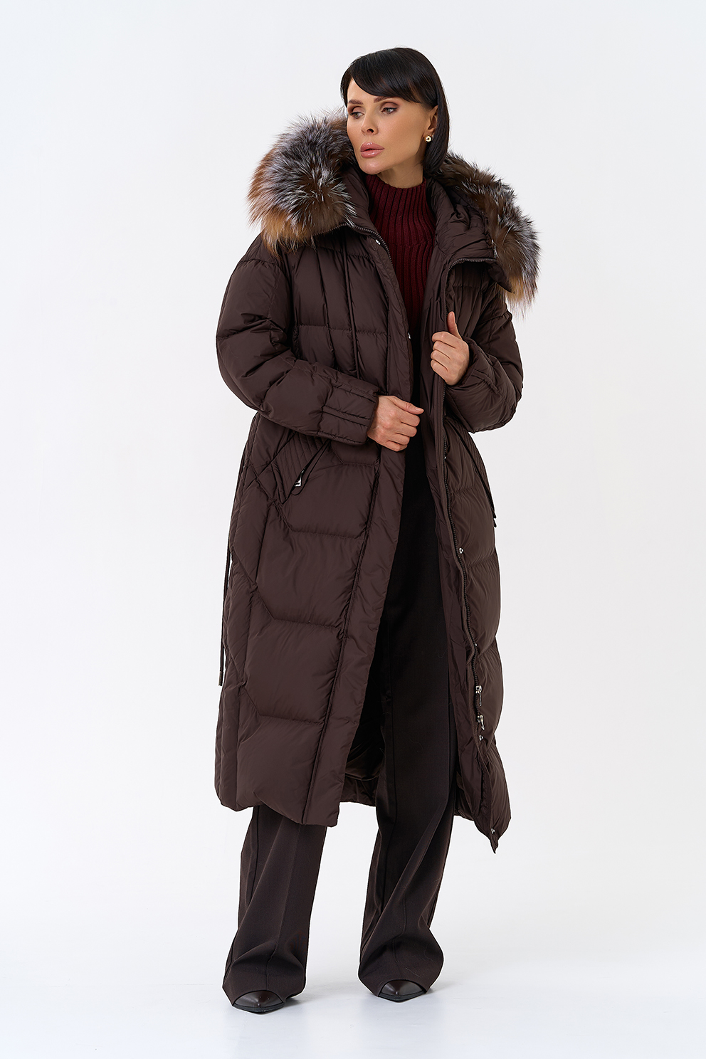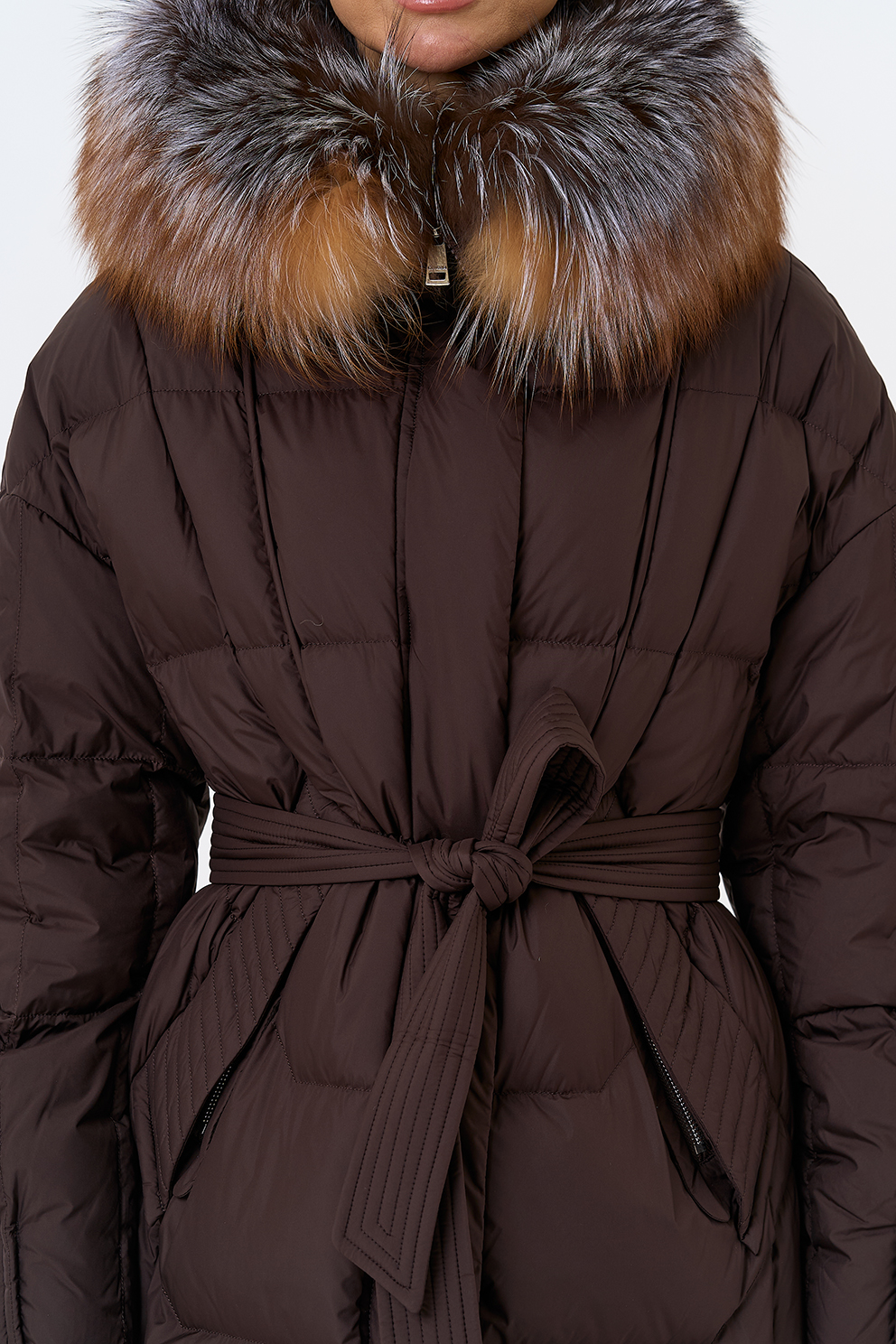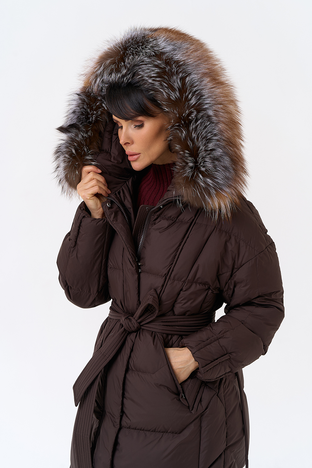 Крой воротника - капюшон, отделка блюфрост