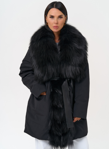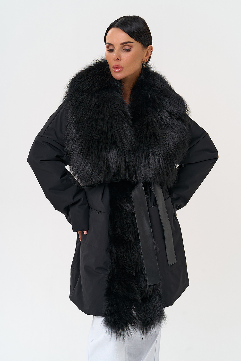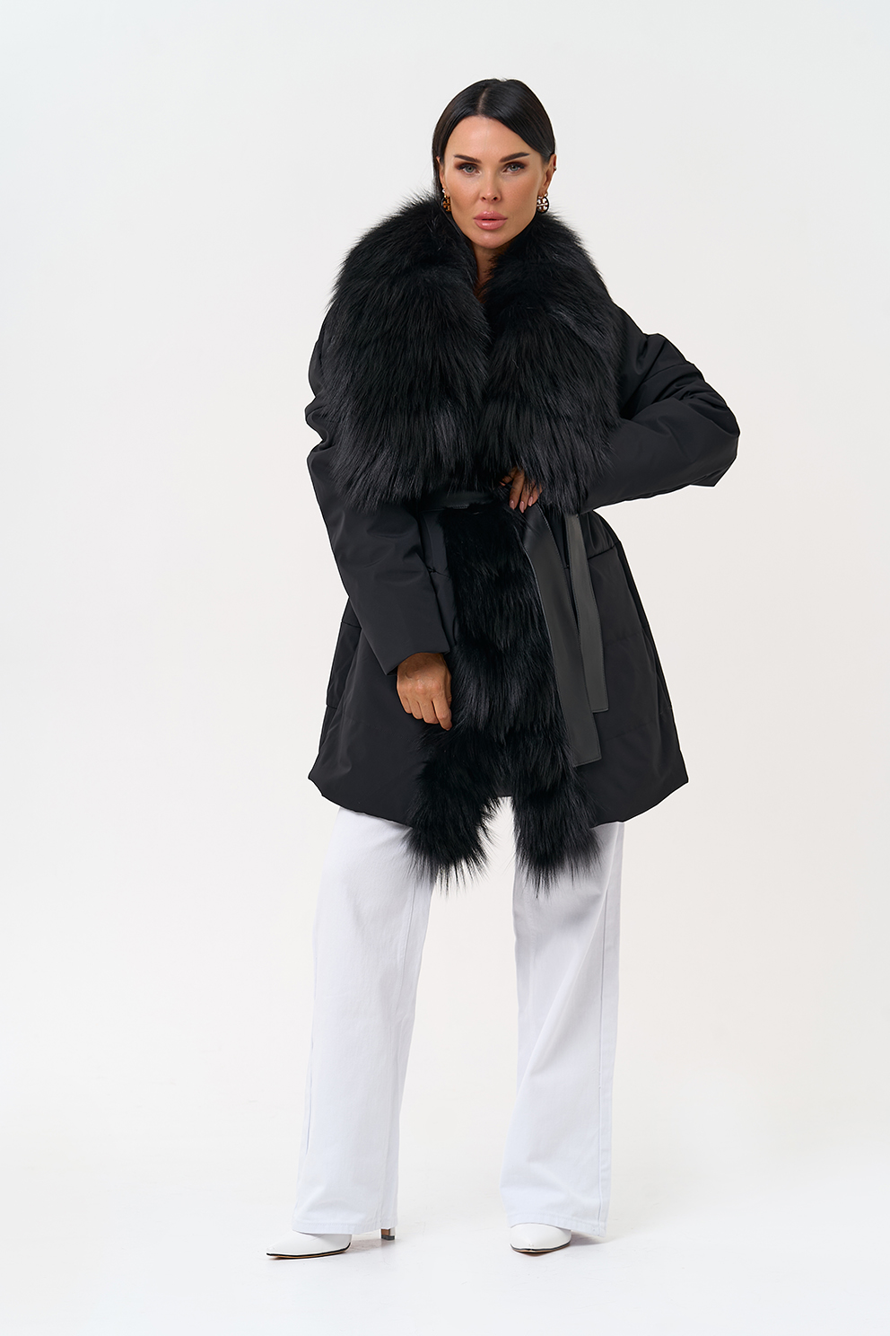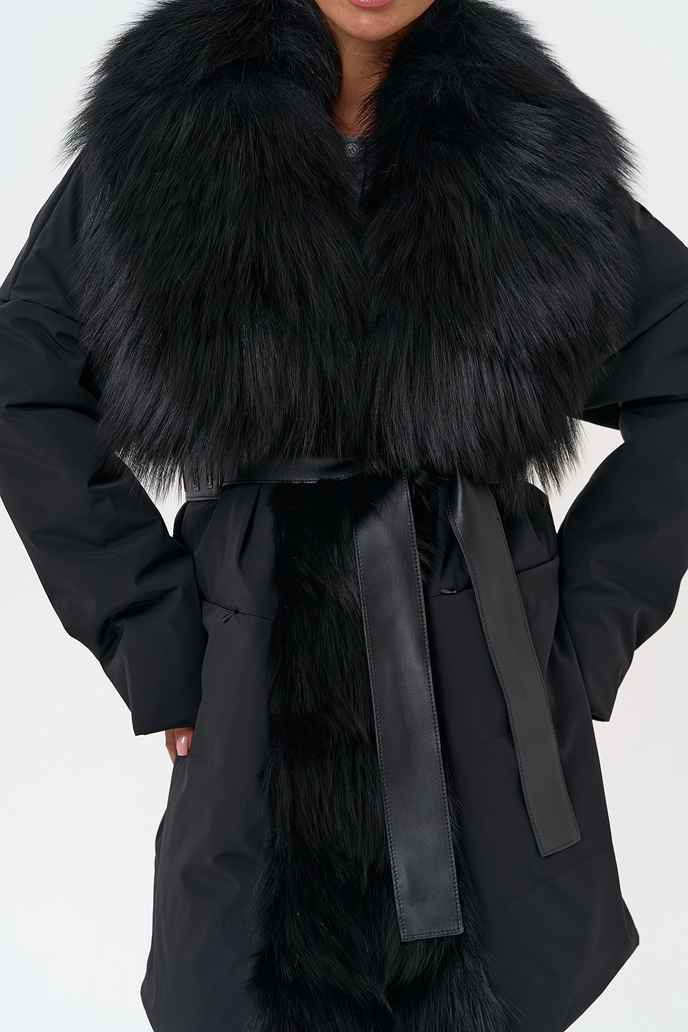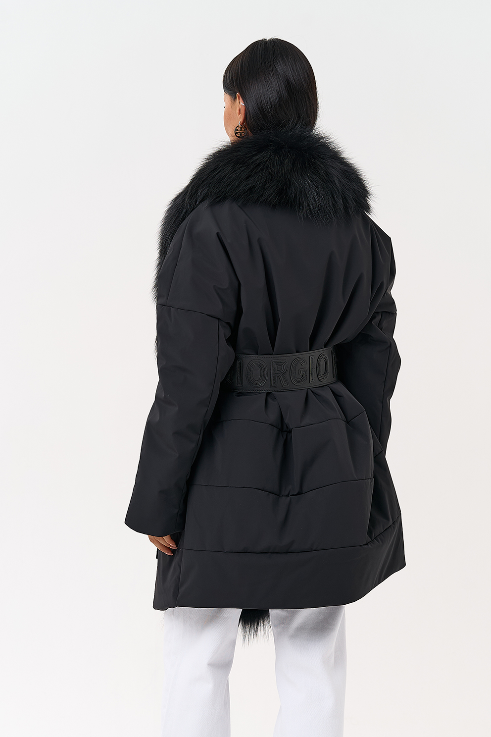 Вид застежки - кнопки, брендированный пояс из натуральной кожи