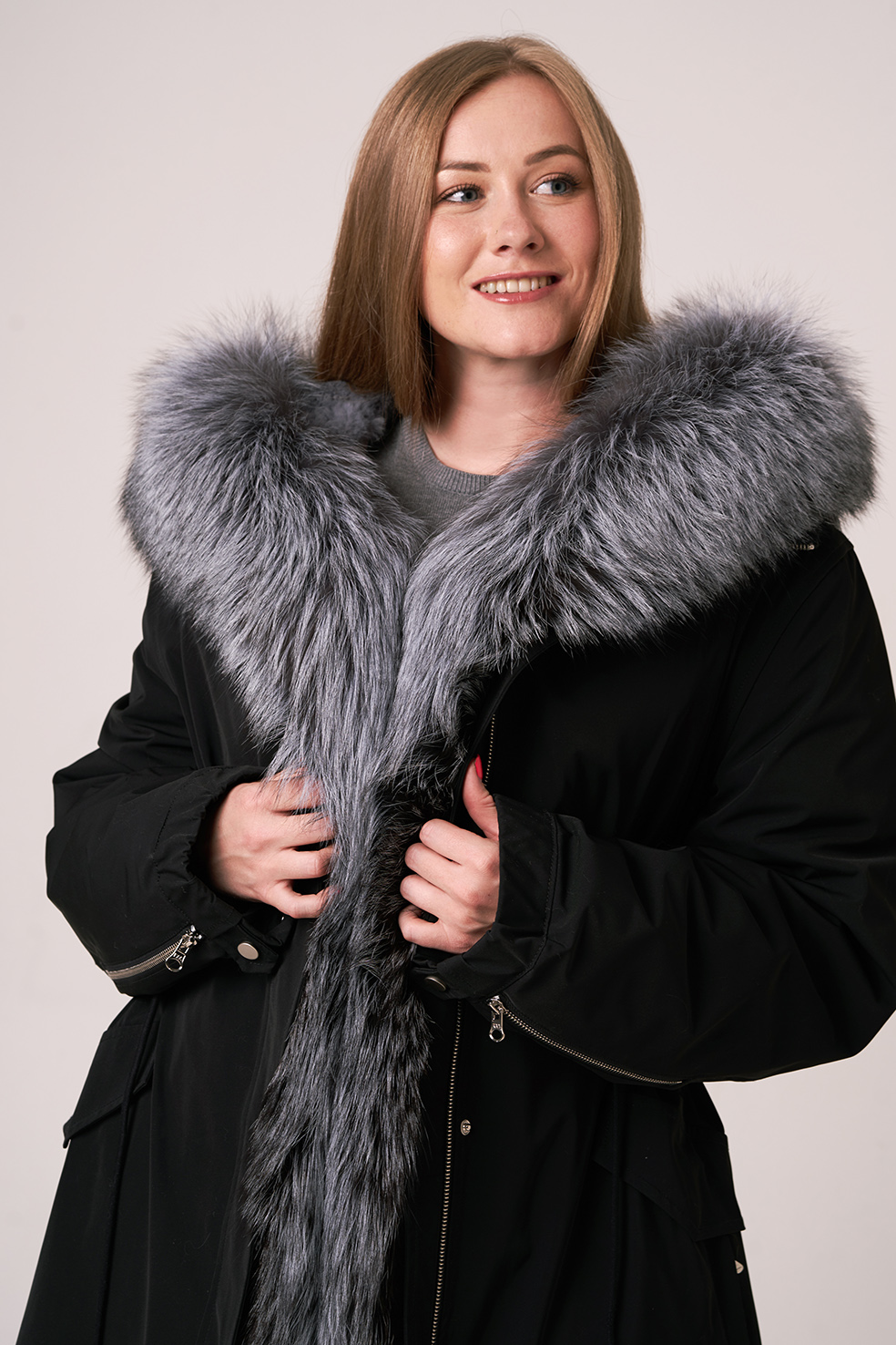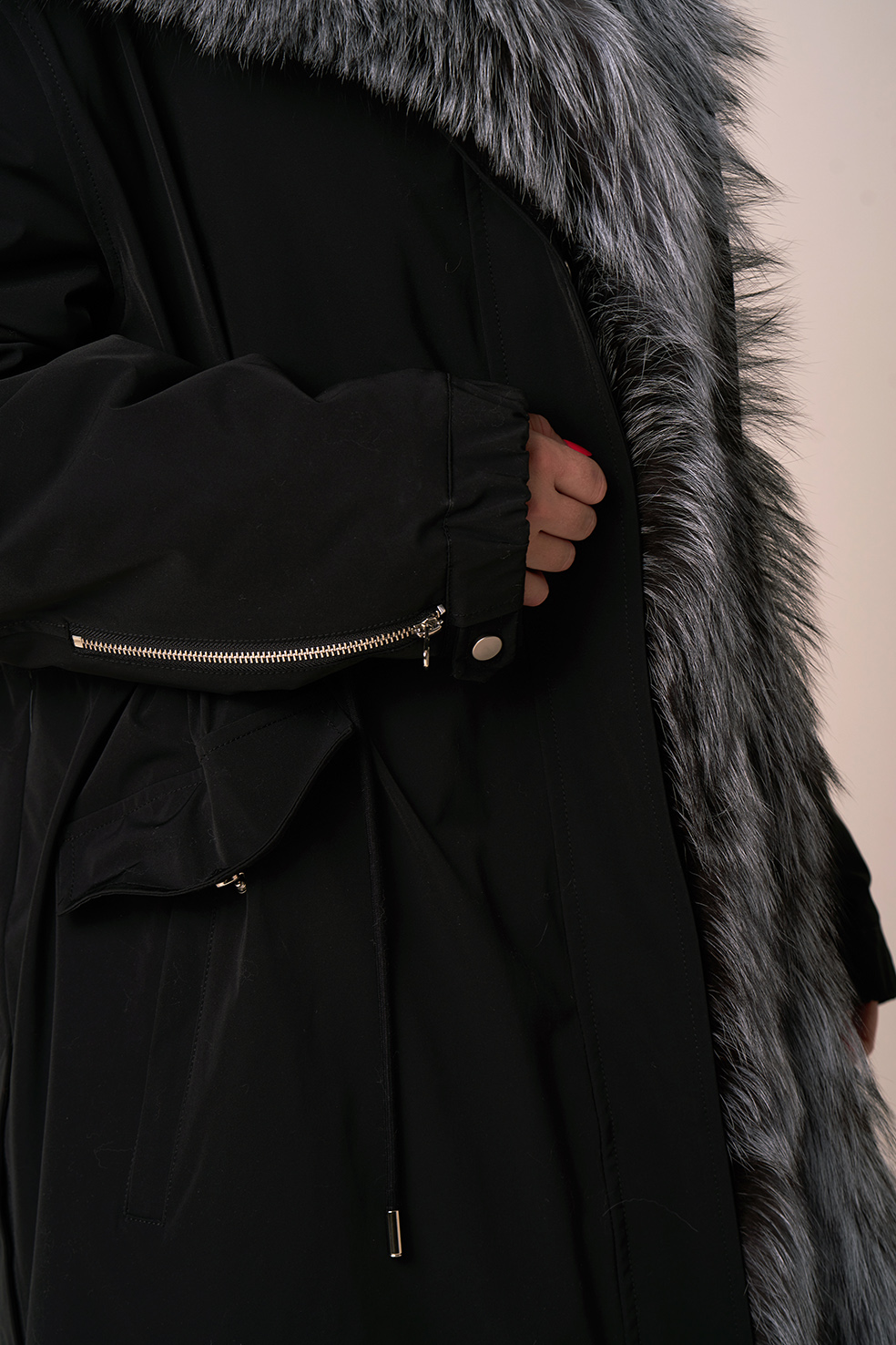 Парка с меховой отделкой, выполненная в американском стиле - удлиненная по спинке. Имеет функциональный, современный дизайн и защищает от ветра и холода.