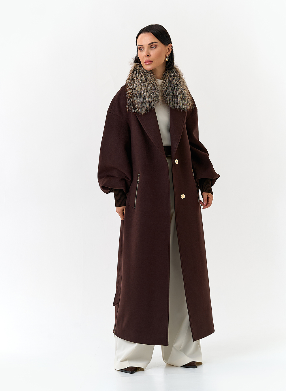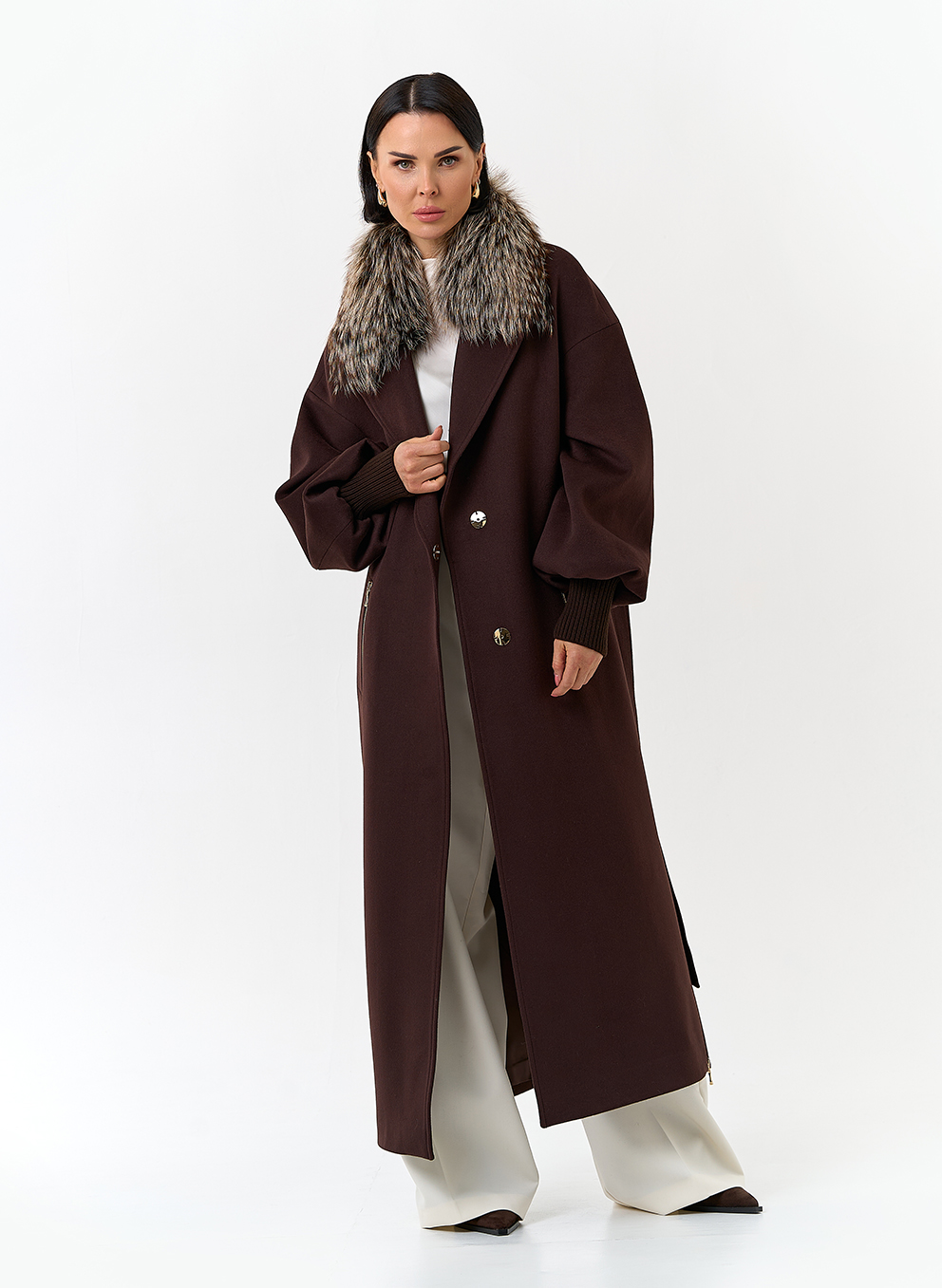 Крой воротника - английский воротник, отделка мех лисы