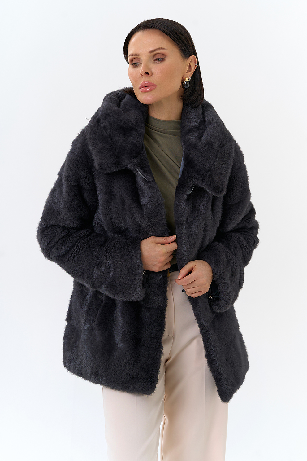 Норковая шуба оверсайз с английским воротником