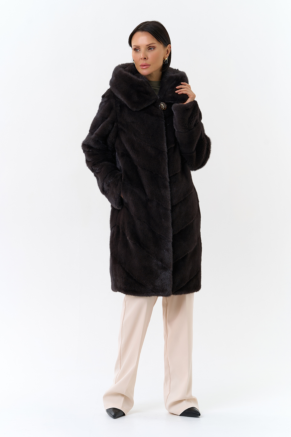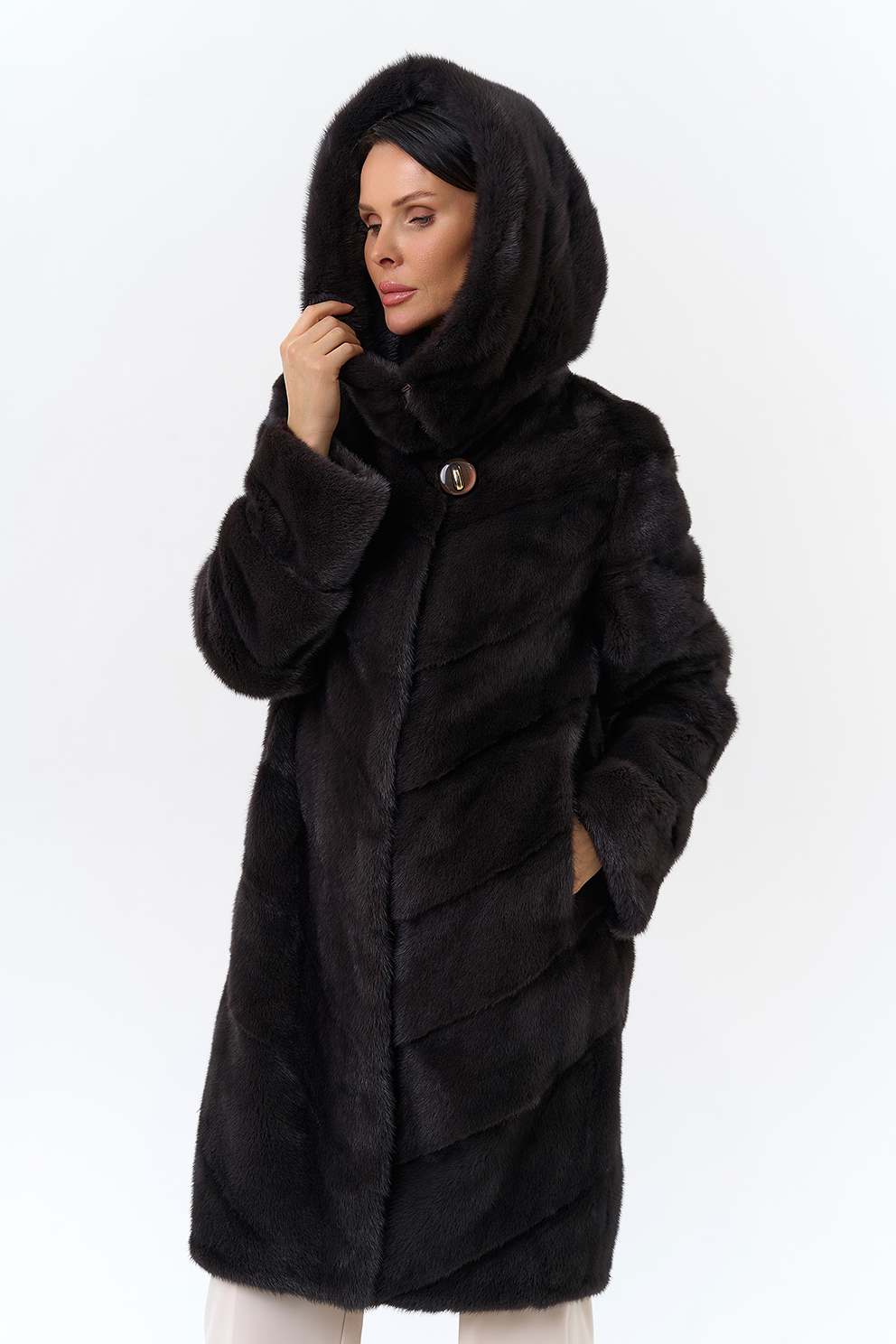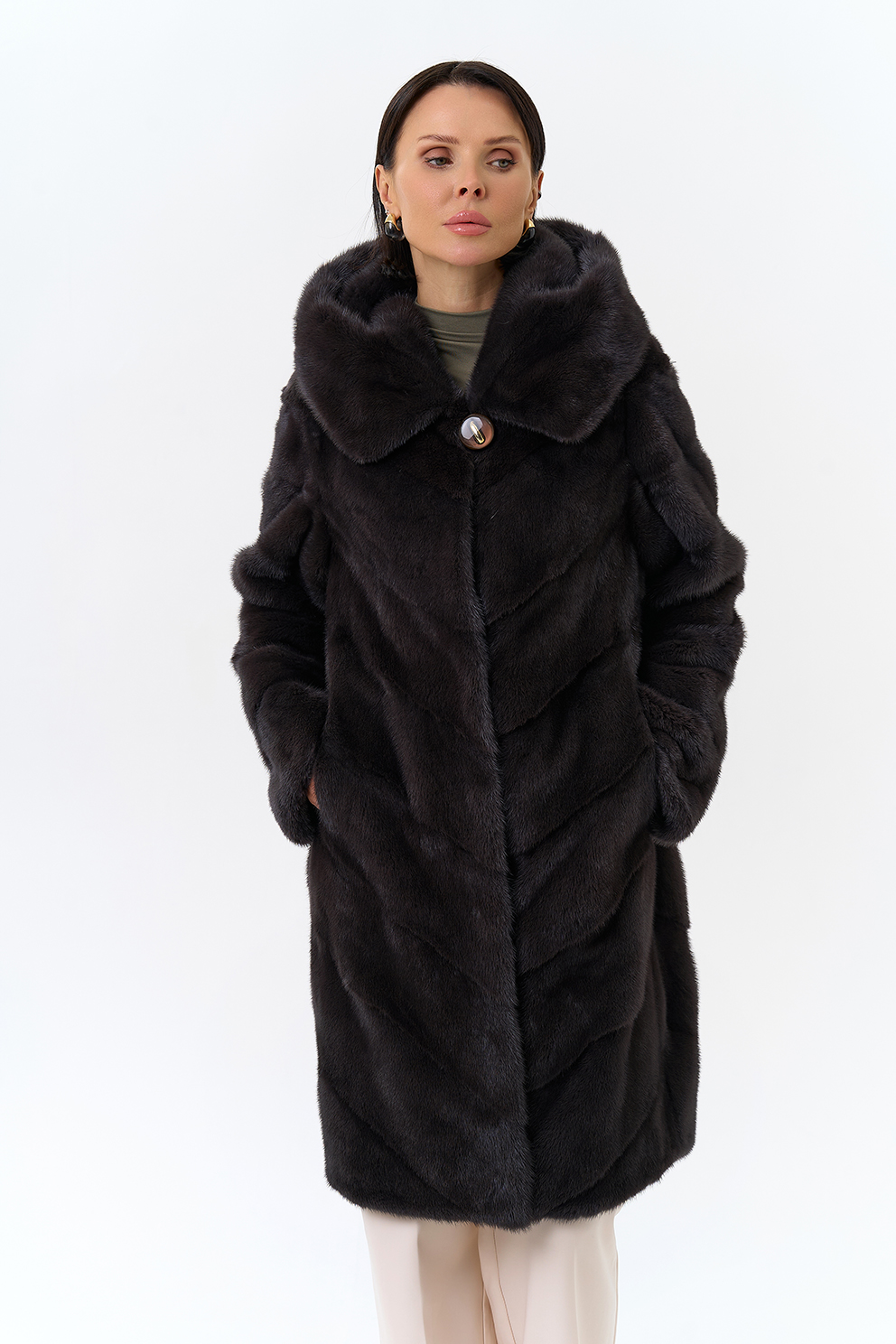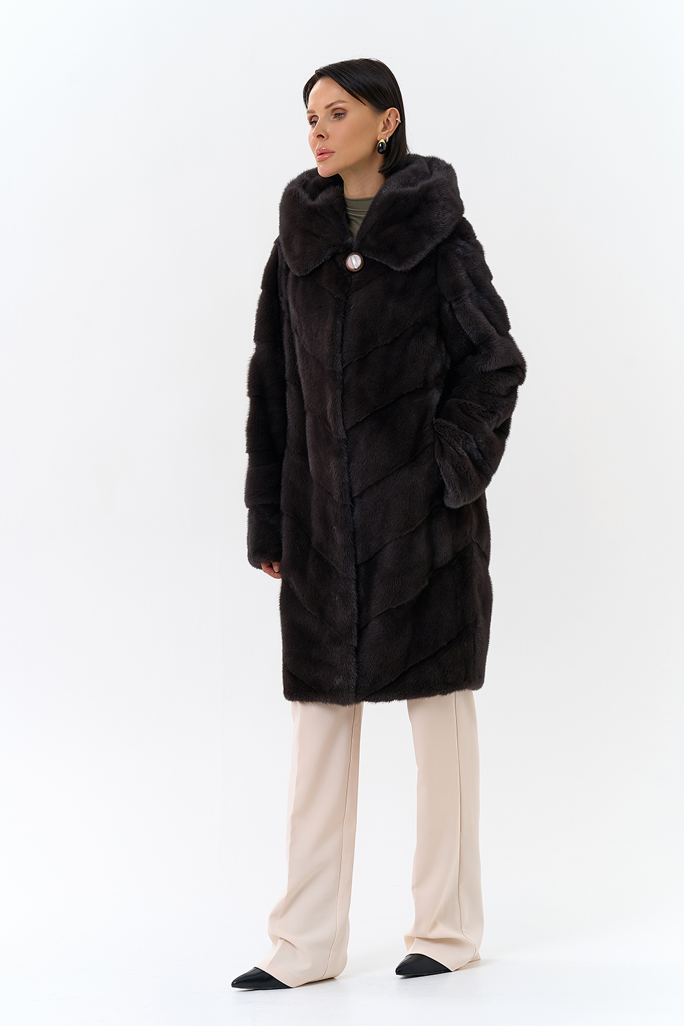 Норковая шуба в диагональном раскладе