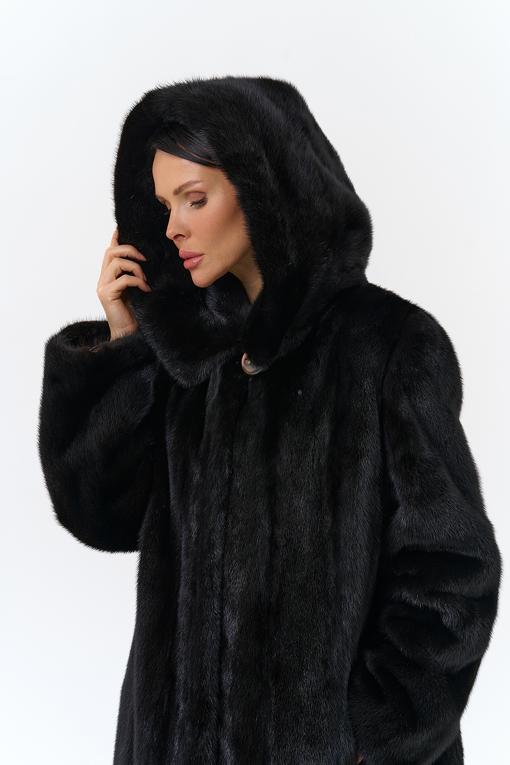 Шуба из норки с капюшоном