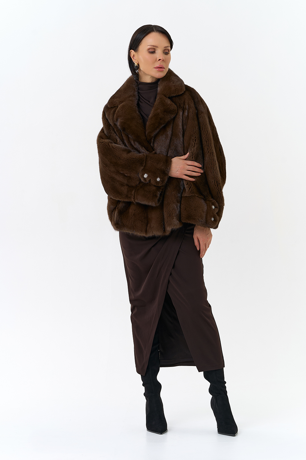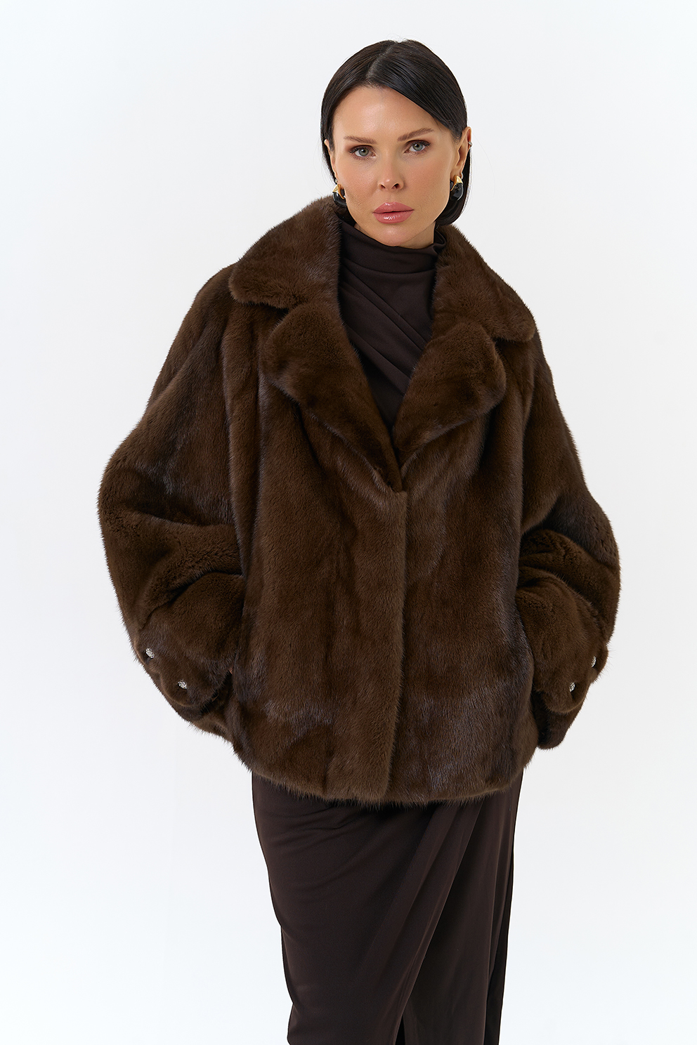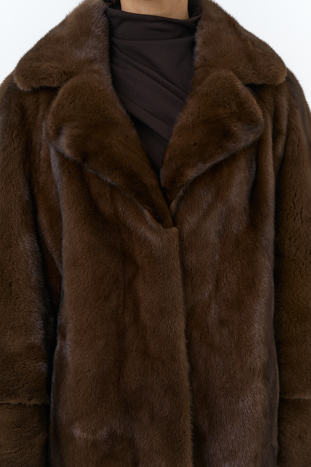 Укороченная шуба из меха норки (коричневый)