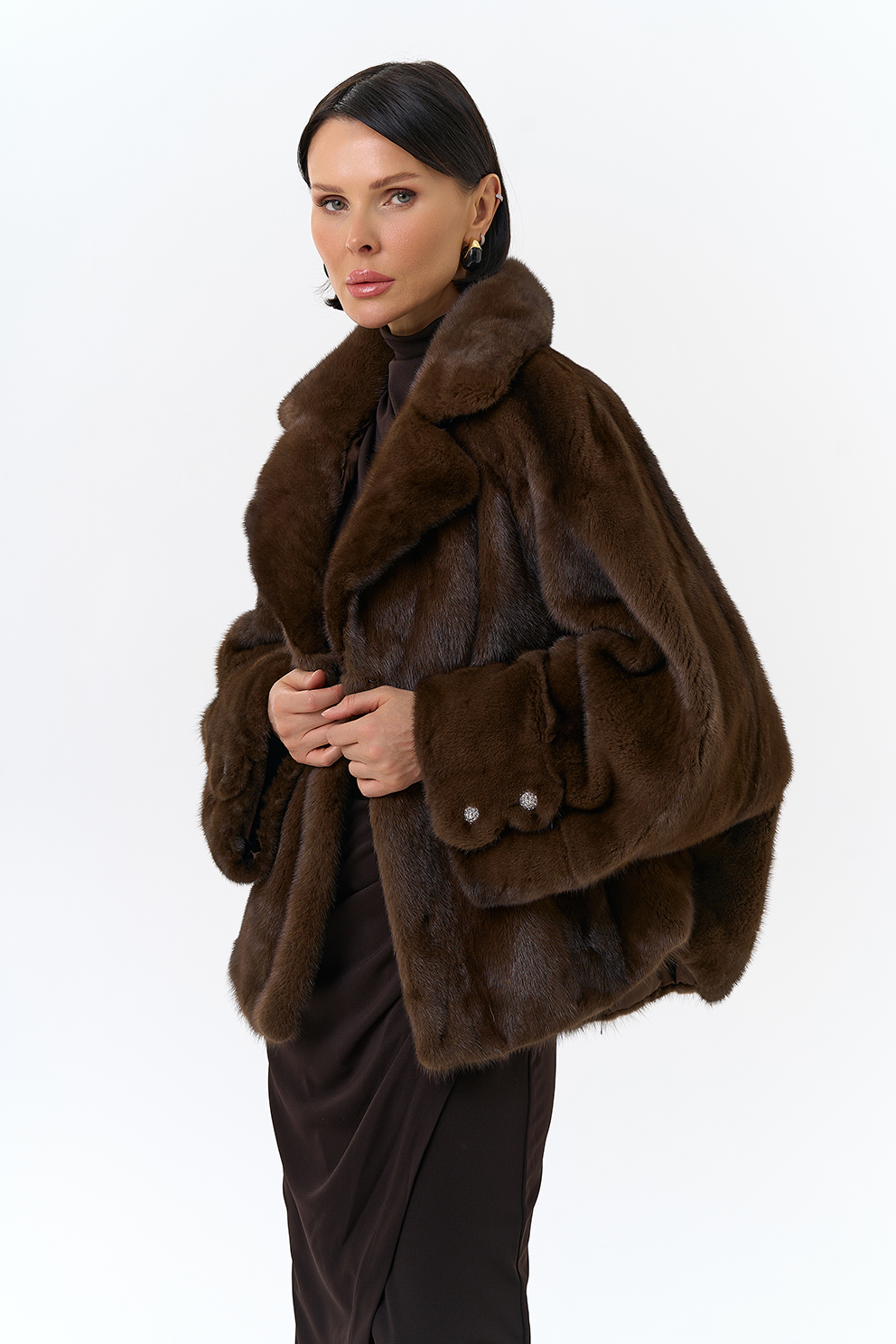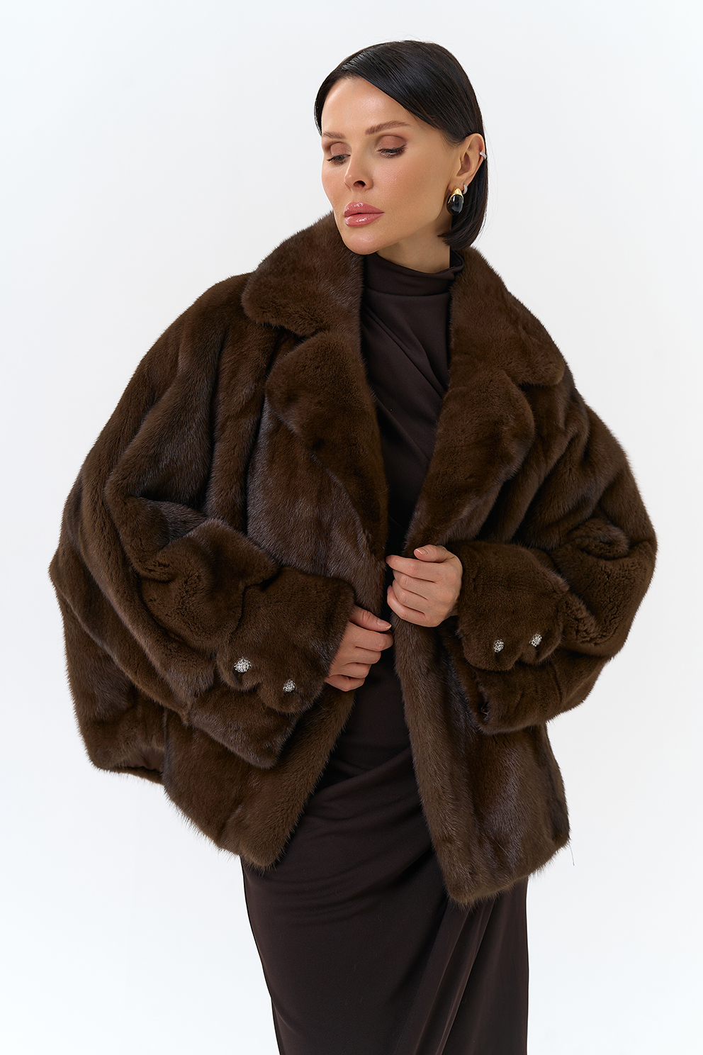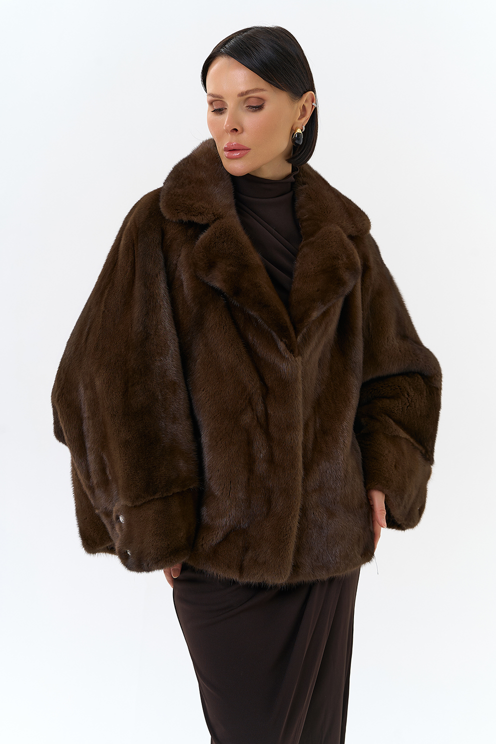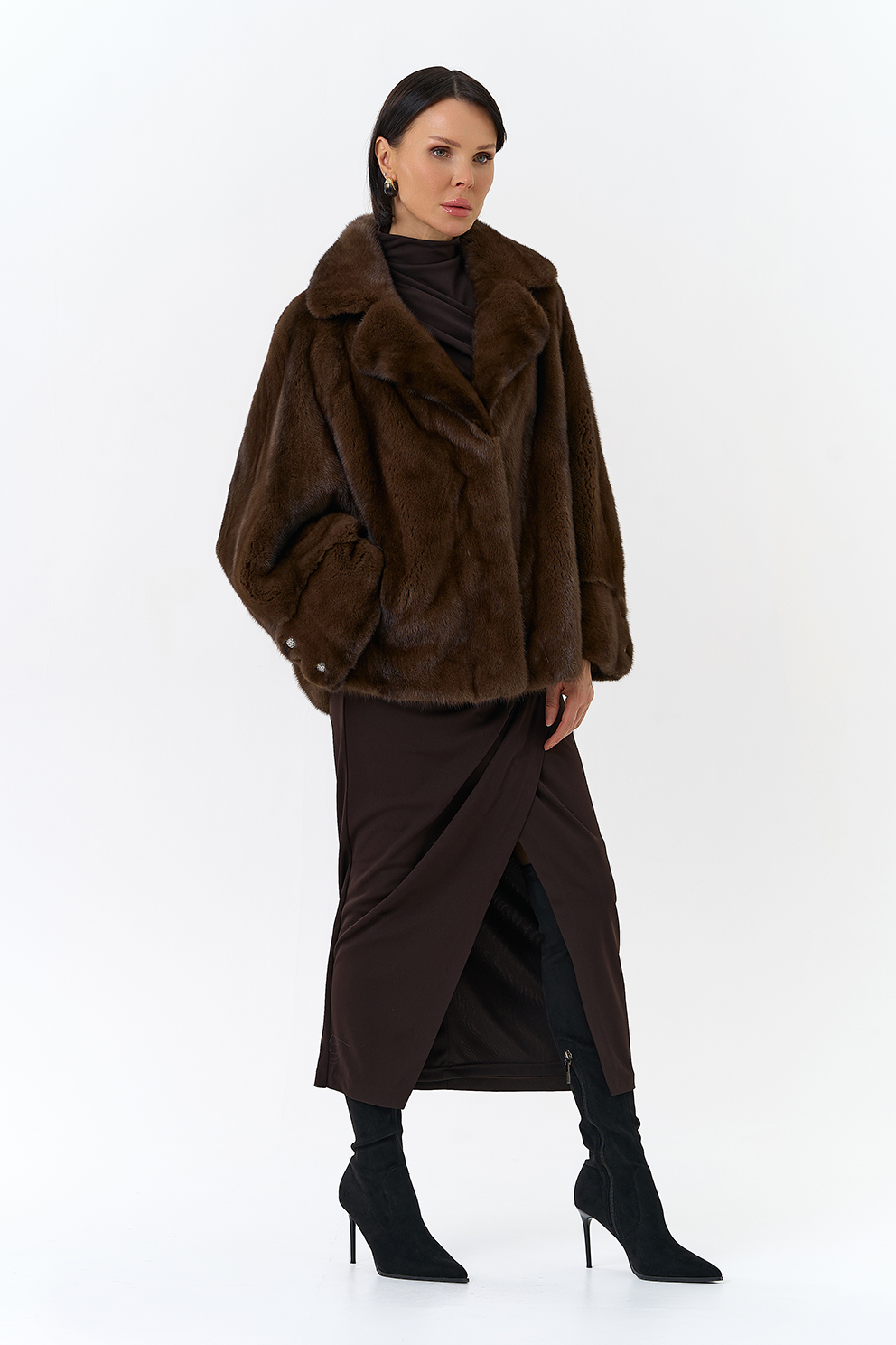 Укороченная шуба из меха норки (коричневый)
